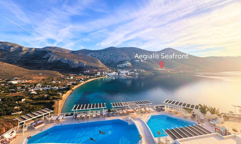 Localizado logo acima das águas calmas da Baía de Aegialis, o empreendimento tem apenas 28 residências de luxo à beira-mar. Ele traz todo o conforto e sofisticação de um resort para um dos cantos mais autênticos da Grécia. As casas ficam em frente ao famoso Aegialis Hotel & Spa, um hotel cinco estrelas familiar que há mais de 30 anos é referência em hospitalidade na ilha.
