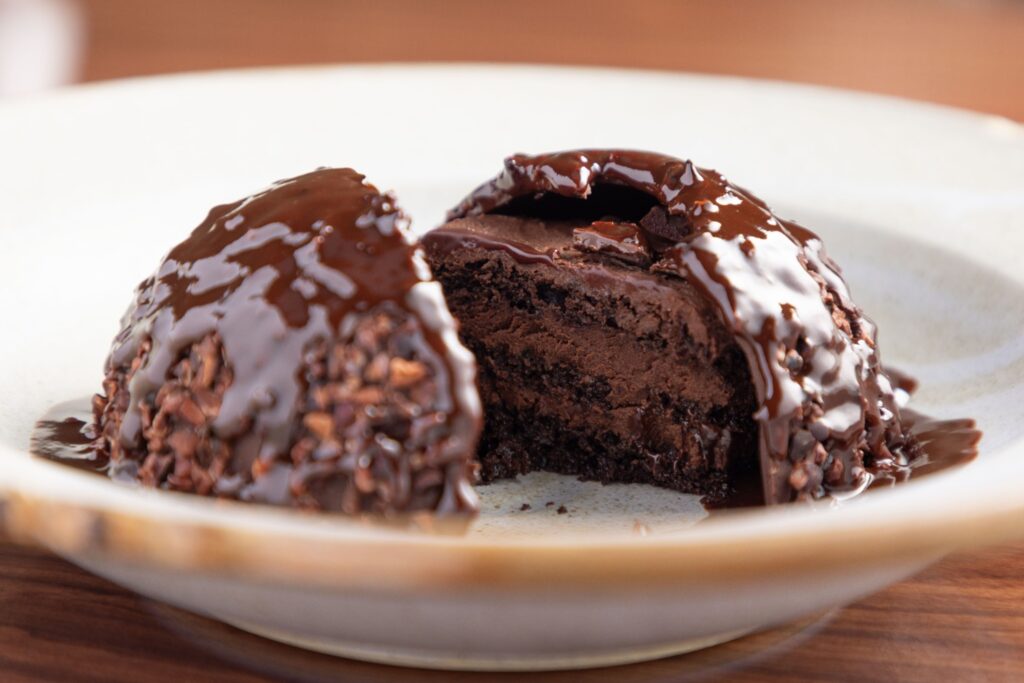 Para finalizar, duas sobremesas: o Fraisier, com mousse de baunilha, morangos frescos e calda de morango ou o Magnifique, bolo em camadas de chocolate belga e avelã.