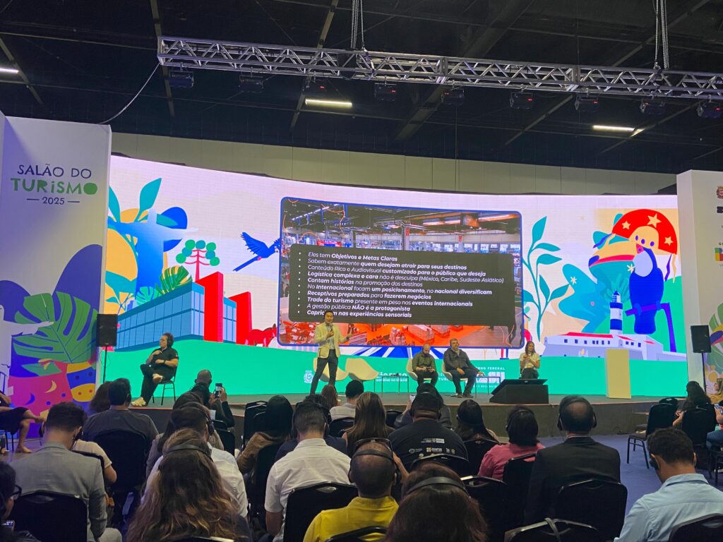 - Marketing e comunicação digital turístico, apresentado por Thiago Akira, que trouxe cases internacionais de branding e posicionamento de destinos, reforçando a importância de narrativas autênticas para conquistar novos públicos.