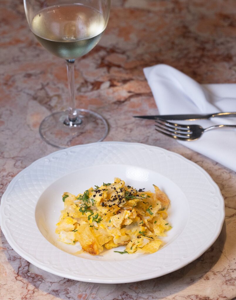 3º tempo: Clássico à Brás (lascas de bacalhau com ovo, chips de batata e cebolas).